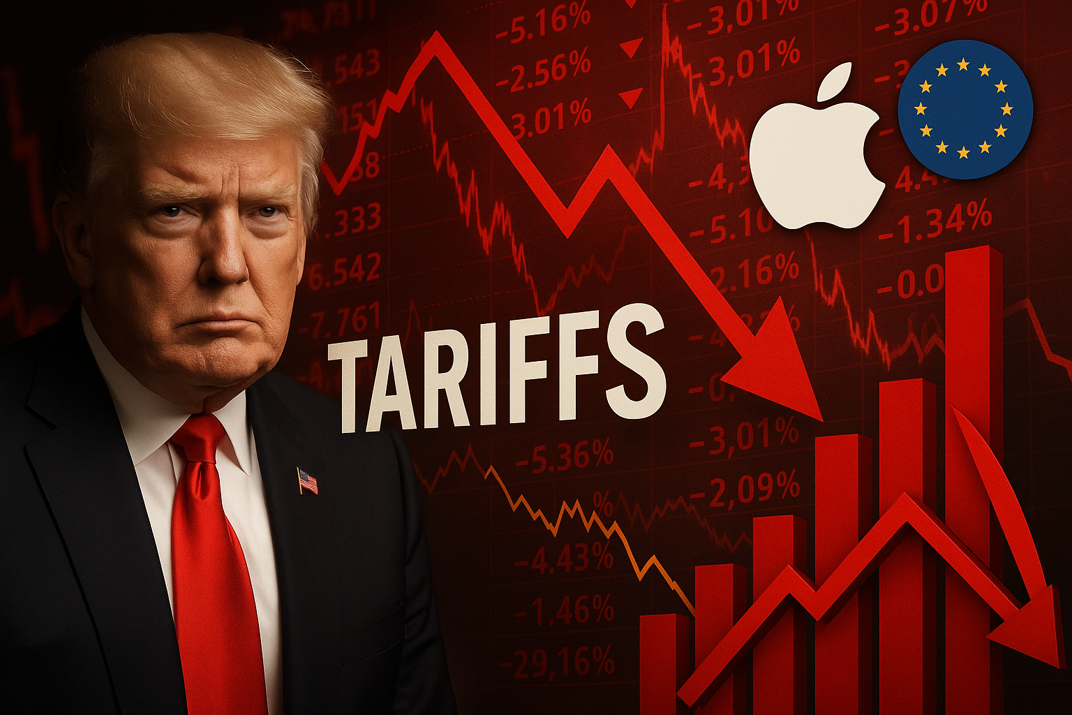 2025년 5월 23일(현지시간), 미국 뉴욕증시는 도널드 트럼프 대통령의 유럽연합(EU) 및 애플에 대한 고율 관세 위협으로 인해 하락세로 마감했습니다.